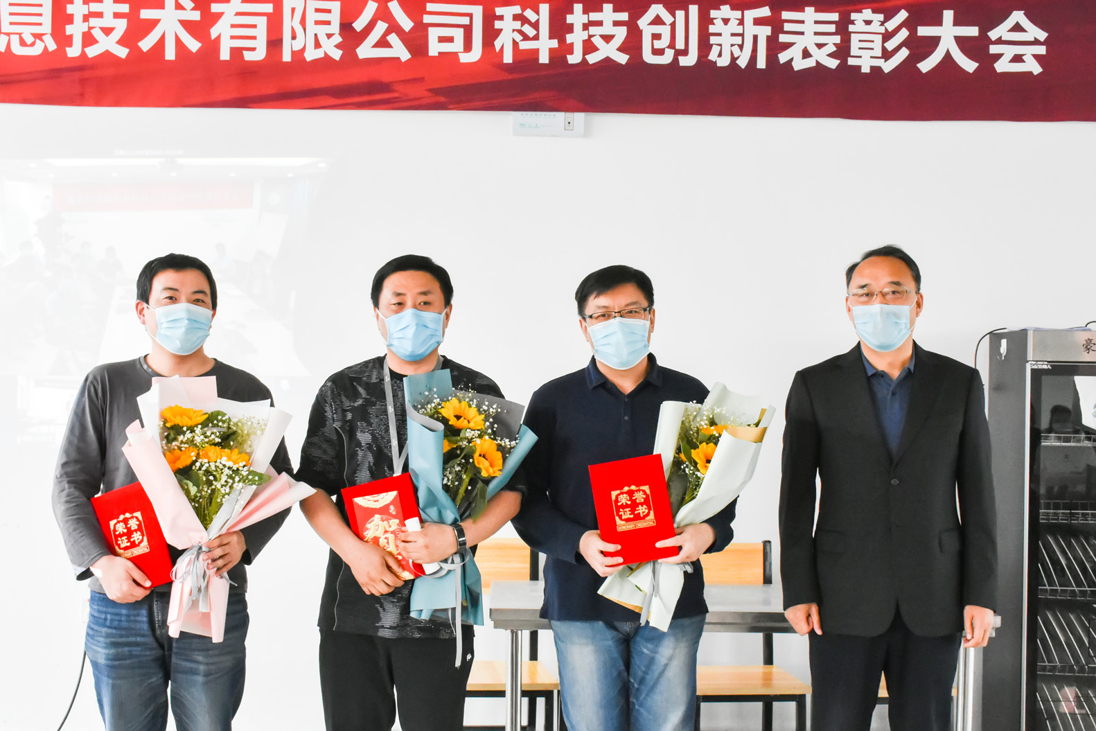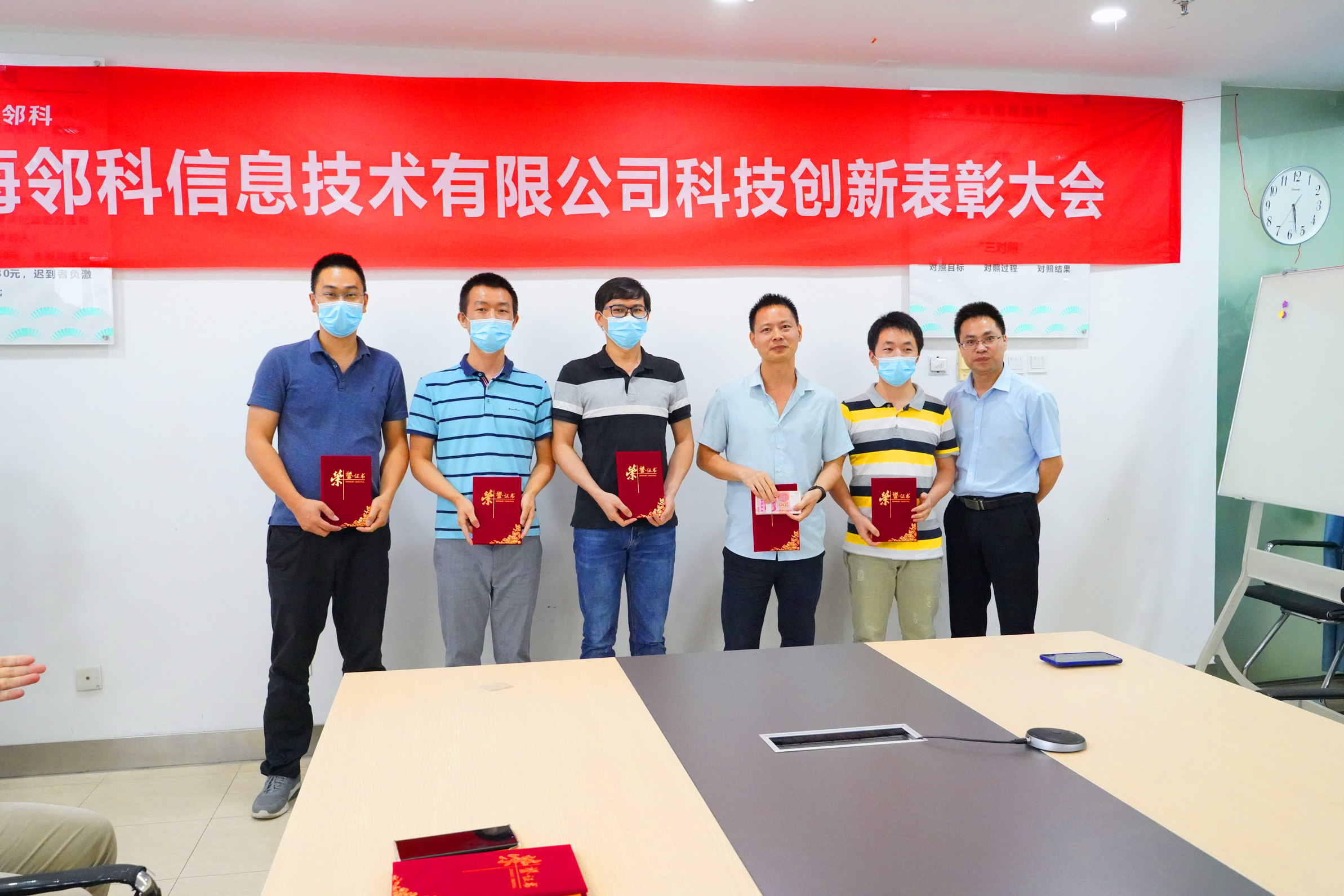 520日下午,海鄰科公司深圳、哈爾濱和西安三地視頻連線,同時(shí)舉辦“海鄰科信息技術(shù)有限公司科技創(chuàng)新表彰大會(huì)”,對(duì)最近連續(xù)獲得4項(xiàng)發(fā)明專利的發(fā)明團(tuán)隊(duì)進(jìn)行表彰,海鄰科全體員工參會(huì)。