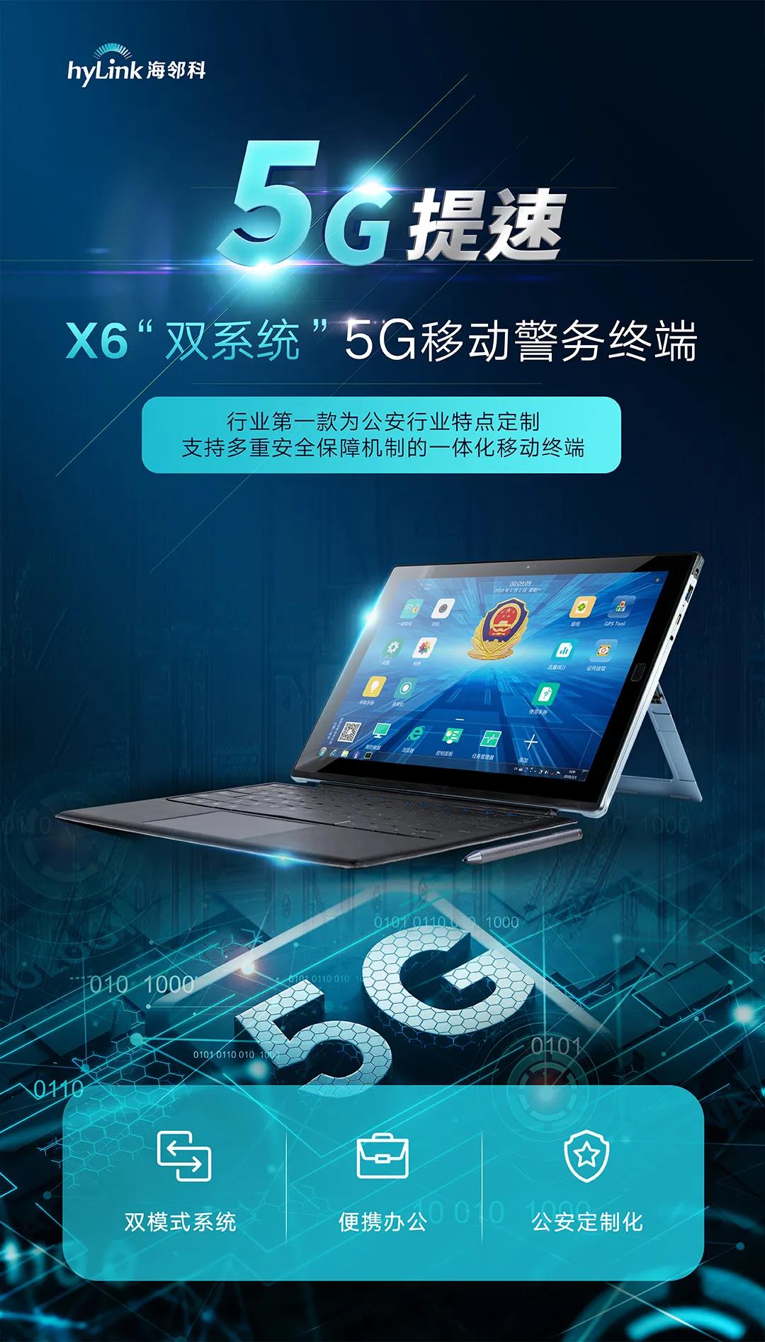 海鄰科作為公共安全領域AIoT設備及服務提供商,專為公安用戶定制,持續(xù)創(chuàng)新推出了一系列移動警務終端,用戶已經遍布全國27個省市自治區(qū),全國警務市場占有率達到70%以上。尤其X6的應用,更是幫助用戶解決了多項問題,收獲大量好評,深受市場歡迎。為了讓用戶享有更低的時延、更高的帶寬、更可靠的性能和更廣的連接,體驗更快的速度,海鄰科全新推出X6升級版5G移動警務終端。升級版的X6,不僅具有5G功能,更是在CPU、內存、硬盤及電池的性能上得到極大的提升,全面應對更復雜的應用。