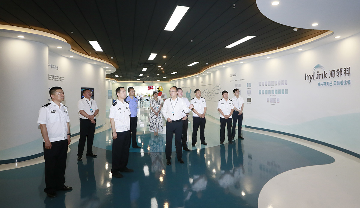 簽約儀式開(kāi)始前,史衍芳局長(zhǎng)在張海軍董事長(zhǎng)的陪同下,參觀了海鄰科公司警用智能裝備展廳、研發(fā)團(tuán)隊(duì)工作現(xiàn)場(chǎng),了解海鄰科公司戰(zhàn)略布局、發(fā)展歷程和企業(yè)文化。