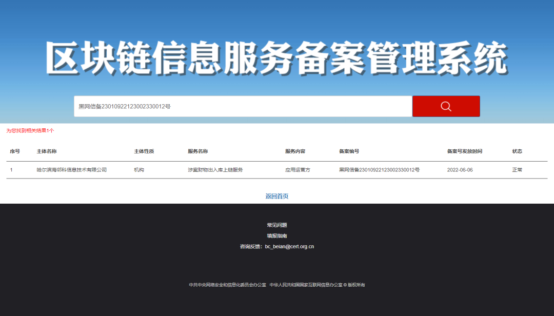 近日,國(guó)家互聯(lián)網(wǎng)信息辦公室關(guān)于發(fā)布第八批境內(nèi)區(qū)塊鏈信息服務(wù)備案編號(hào)的公告,海鄰科區(qū)塊鏈HylinkChain通過(guò)國(guó)家互聯(lián)網(wǎng)信息辦公室備案。這是黑龍江省政法行業(yè)首個(gè)獲備案編號(hào)的區(qū)塊鏈認(rèn)證資質(zhì)。